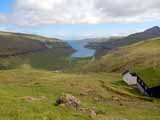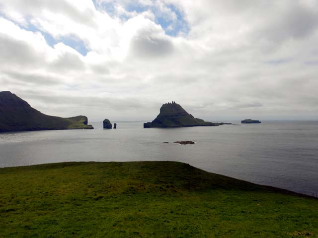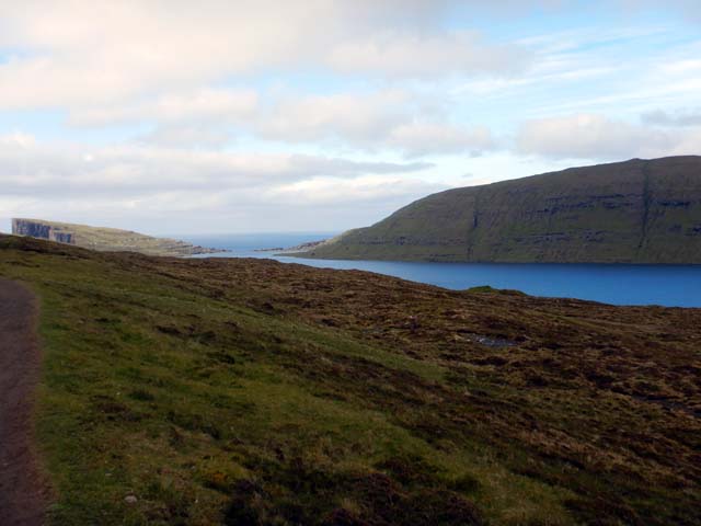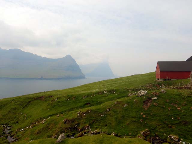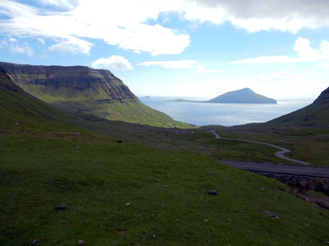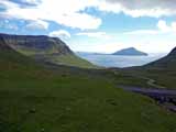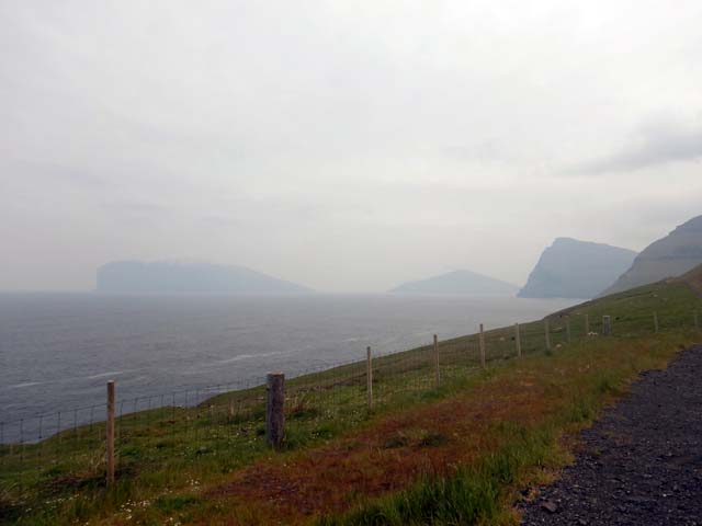 西にはクノイ島(Kunoy)、ボルウォイ島(Borðoy)が見える。反対の東側にはフグロイ島(Fugloy)、スヴィノイ島(Svinoy)が見える。鳥の島と豚の島という意味らしい。