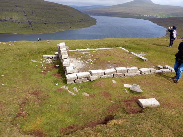近くの村の海岸沿いにSigmundur の墓がある。海を泳ぐ男が彫られている。このSigmundur Brestissonはフェロー諸島にキリスト教を導入した人だが、その後に襲われて海に飛び込み、スウロイ島(Suðuroy)のここまで流れ着いたが、地元の農民に殺されてしまった。