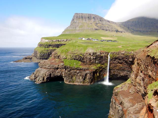 ここもフェロー諸島といえば、という有名な景色の1つ。村の下にMúlafossurという滝があり、とても絵になる。