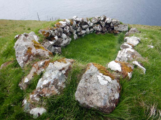 Trælanípaの上には小屋の後のようなものがあって、ここは第二次世界大戦時にフェロー諸島を占領していたイギリス軍が見張り小屋のようなものを建てた後とのこと。