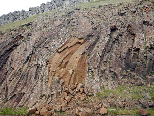 一見アイスランドによく似ているが、アイスランドと違って火山はなく、また、いくつもの島に分かれている。ただし、現在火山はないものの地質は「火山性」で、場所によっては柱状節理のような岩石がむき出しになっているし、地層もはっきりしている。全体としては南側が隆起していて、結果、古い地層が表出しているとのこと。