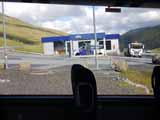 8:00にTórshavnのバスターミナルを出発。系統300のバスは空港だけではなくVESTMANNAも行き先になっているが、そのまま乗っていると空港に行ってしまうので、途中で100に乗り換える必要がある。この小さなコンビニみたいな場所がその「交通の要所」となっている。