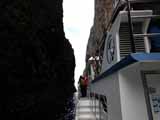 30分前に船の乗り場に行ったら、ツアーバスが来たのかもう一杯で良い場所は押さえられてしまっていた。失敗。日本から持参した雨具を着込んで出発準備完了。