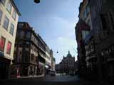 街並みはいかにもヨーロッパという重厚な建物が続いている。おもしろいのは街灯で、電信柱はないので、道の両脇の建物を渡してつり下げてある。