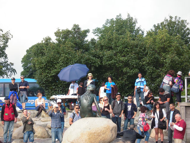 ボートからも見てしまったのだけど、定番の人魚像。てくてくと歩いて行くと、人だかりがしていて、それと知れる。