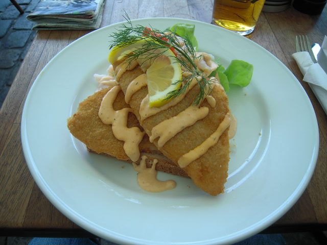 時間が少しあったので、ニューハウンまで戻って運河沿いに並ぶレストランGalionenで昼食。運河沿いに船が並び、絵になる風景なので観光客がとても多い。で、観光客向けらしいレストランも非常に多い。