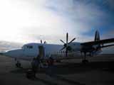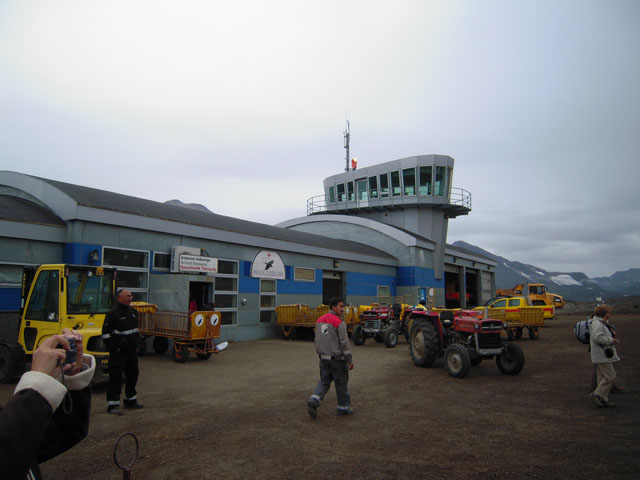 レイキャビク(Reykjavík)空港からAir IcelandのNY231で10:10に出発。飛行機はFokker 50で同日10:10にグリーンランドのクルスク(Kulusuk)の空港に到着。機内食を食べた後、ちょっと寝てしまったが、グリーンランドに近づくと、砂糖をぱらぱらとまいたように海に氷が浮かんでいるのが飛行機から見えた。