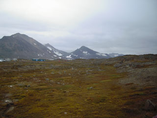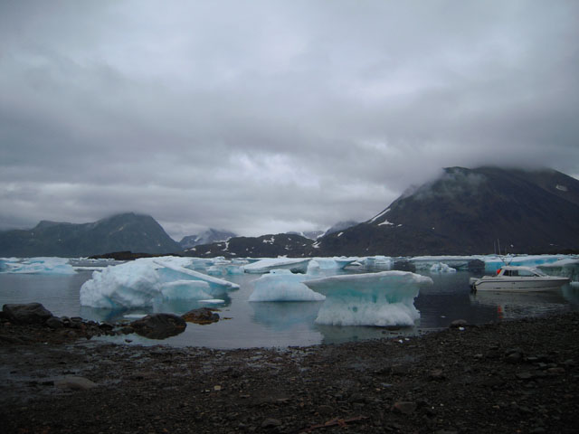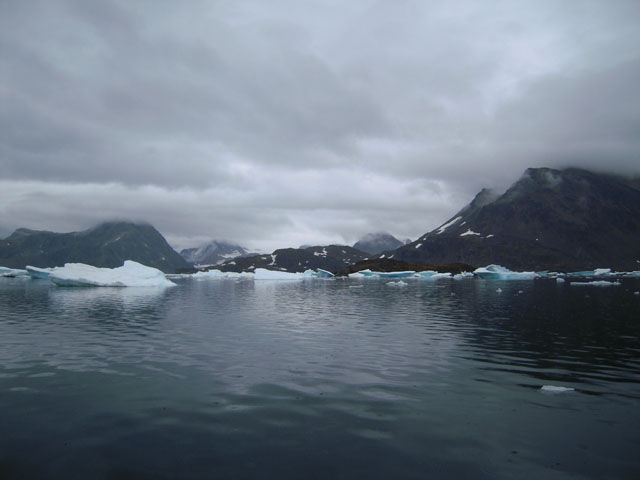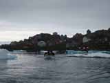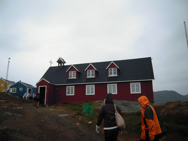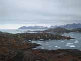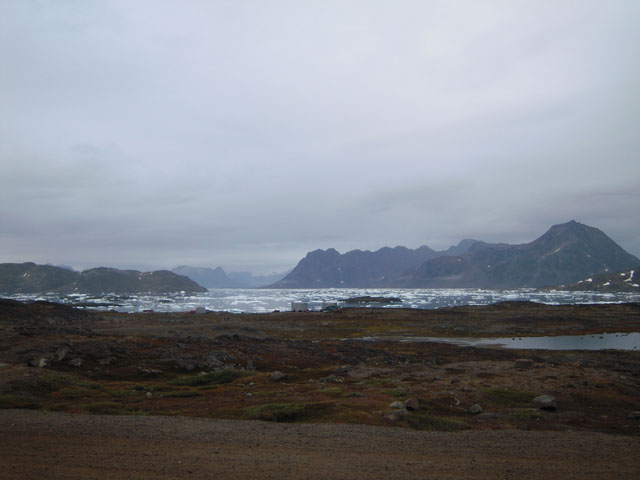 ガイドに引率されてクルスク(Kulusuk)の村へ向けて散策。海に氷が浮かんでいたり、氷河が見えたり、アイスランドよりずっと寒くて殺風景な感じがする。