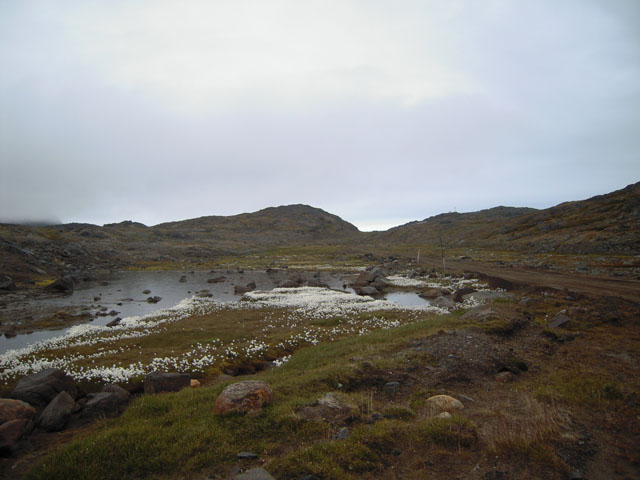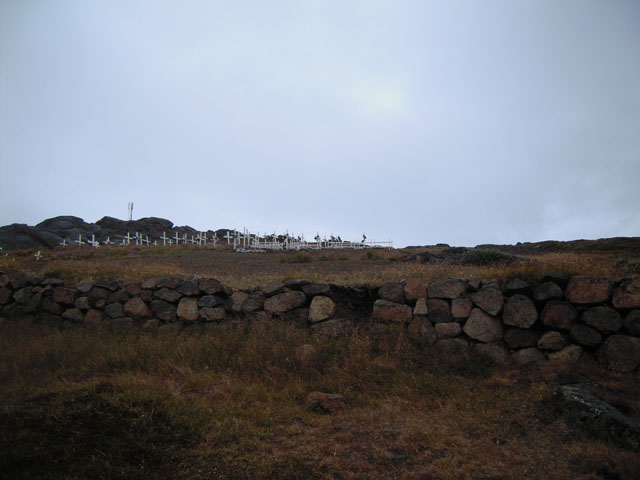 丘の上には墓地がある。一緒に参加した観光客の主張によれば、ここはグリーンランドの観光案内に必ず行けと書いてある場所。そういえば、日本のガイドブックにも載っていた気がする。花は全部造花で、奇妙な感じがする。