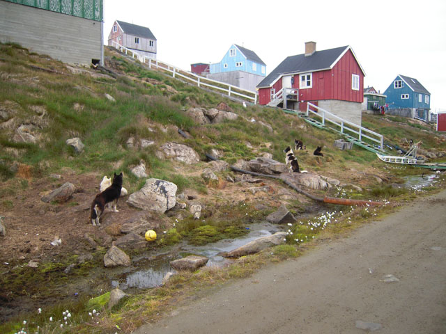 村につくといきなり解散して自由行動。しかし、何にもない村なので住宅が並ぶ中を少し歩くとすぐに終わってしまう。村の中は飼っているらしい犬が多く、それがアザラシをかじっていたり、吠え続けていてちょっと不気味。道ばたにはゴミがたくさん落ちていて、きれいとは言い難い。