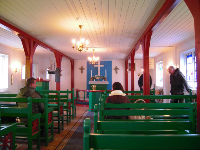 再び集合し、村の教会へ。シンプルな教会だが、そこでガイドと質疑応答。のんびりした村だが、船を持っている一部の人は漁業ができるが、それ以外の人は仕事も含めて何もやることがなく、ただ生活保護に頼っているのだという。なんと2/3が仕事がないという状況らしい。さらに、村人を観察すると、金が入るとまずスーパーで食べ物やビールを買う。次に来るときはビールだけを買う。そして金がなくなると、釣りを始める者もいるらしい。楽しむためではなく、金を使ってしまい、生きるために釣りをするのだそうだ。産業もないし、地下資源があるのも内陸の話。問題は多い。