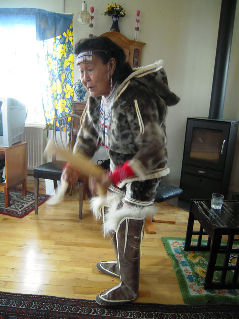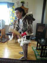 一軒の民家に連れて行かれ、そこで伝統のドラムダンス。かなりお年を召した女性が民族衣装で踊って見せてくれる。タンバリンというか太鼓のようなものを使うのだが、枠を叩いて踊る。踊るというか、いろいろな表情をするので、それがおもしろかった。
